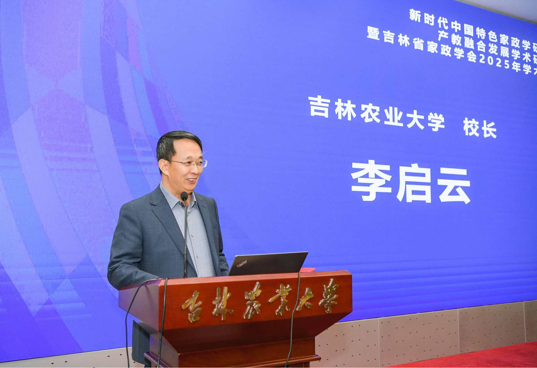 吉林农业大学校长李启云为大会致开幕辞,他代表学校对参会的领导嘉宾和专家学者表示热烈欢迎,介绍了学校的发展状况,肯定了学校家政学学科的建设成绩,并表达了对吉林省家政学会、家政学学科建设的高度期许。